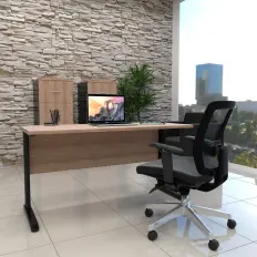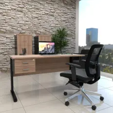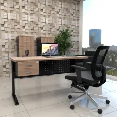MESA RETA COM GAVETEIRO FIXO E PÉ PAINEL