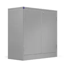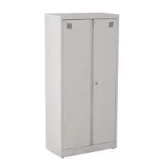 Armário de aço, chapa 26°, com duas portas de abrir com chave, três prateleiras móveis e uma fixa.