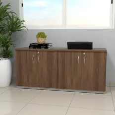 Armário baixo aberto com tampo confeccionado em MDP de 25 mm, corpo confeccionado confeccionado em MDP de 15 mm, rodapé em estrutura tubular metálica com niveladores de altura.