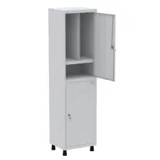 Armário caixa postal com 10 portas confeccionado em chapa #26, sistema de fechamento tipo pitão e sistema de porta pivotante sem dobradiça externa e pés reguláveis.