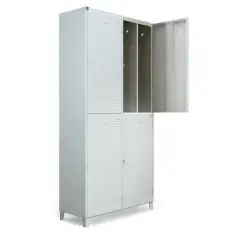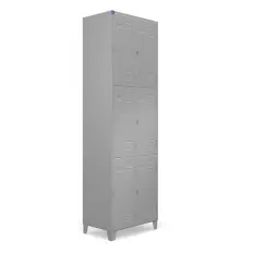 Armário caixa postal com 20 portas confeccionado em chapa #26, sistema de fechamento tipo pitão e sistema de porta pivotante sem dobradiça externa e pés reguláveis.