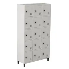 Armário caixa postal com 30 portas confeccionado em chapa #26, sistema de fechamento tipo pitão e sistema de porta pivotante sem dobradiça externa e pés reguláveis.