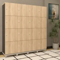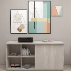 Armário charuto alto aberto com 3 prateleiras, tampo confeccionado em MDP de 25 mm, corpo confeccionado em MDP de 15 mm e rodapé em estrutura tubular metálica com nivelador de altura.