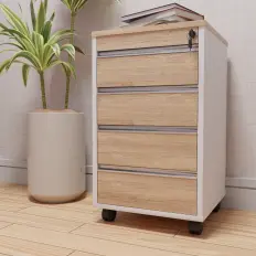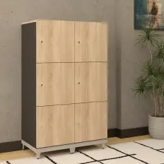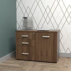 Armário médio fechado diretor com tampo e portas confeccionados em MDP de 25 mm, corpo confeccionado em MDP de 18 mm e rodapés metálicos confeccionados em aço carbono.