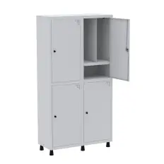 Arquivo de aço com 4 gavetas, confeccionado em chapa de aço nº26 (0,45mm) com sistema de deslizamento das gavetas por trilhoso, tratado por processo anticorrosivo e pintura eletrostática a pó. O peso recomendado por gaveta é de 45 kg (bem distribuídos) e a quantidade de pastas varia de 40 a 50 por gaveta.