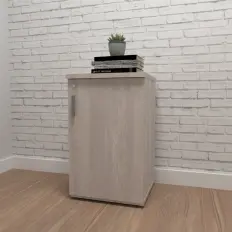 Arquivo de madeira com 4 gavetas pasta suspensa, com travamento apenas na primeira gaveta, tampo encabeçado confeccionado em MDP de 40 mm, laterais, base, fundo e tampas confeccionados em MDP de 15 mm.