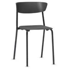 Banco tipo mocho com assento revestido, base giratória tipo caixa com regulagem de altura, estrela em aço com capa plástica e sapata fixa.