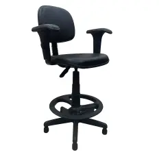 Cadeira Slep executiva com assento e encosto em espuma injetada revestida, com capa plástica protetora no contra encosto, com mecanismo excêntrico, base com regulagem de altura a gás, base nylon, e par de braço regulável com apoio, com 5 rodízios.