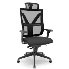Cadeira Pios fixa empilhável aproximação com encosto anatômico em polipropileno, assento estofado e base fixa modelo sky em aço com apoia braços em PU preto.