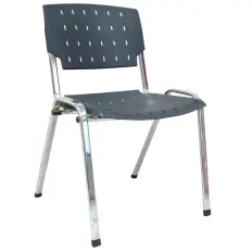 Cadeira Mersey com base fixa em aço e assento e encostos revestidos.