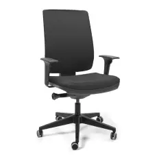 Poltrona diretor Flop com assento e encosto revestidos, base giratória piramidal com mecanismo ergonômico e braços com regulagem de altura.