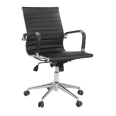 Cadeira secretária com assento e encosto em madeira imbuia 15mm, fixação do assento e do encosto na base por parafusos com proteção na parte superior, assento com ponta caída que garante maior conforto ao usuário, apoio do encosto único sanfonado, base giratória com regulagem de altura a gás, estrela em nylon e 5 rodízios.