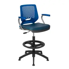 Cadeira fixa Justin com assento e encosto, com braço, fabricados em polipropileno e pés em madeira natural com aço reforçado.
