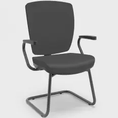Cadeira Zip executiva com encosto em tela, assento em espuma injetada revestida, base giratória piramidal com sistema relax e braços reguláveis.