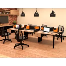 (Foto meramente ilustrativa) Posto de trabalho para call center, que possui estrutura regulável confeccionada em aço carbono com variação de altura independente dos tampos (frontal e posterior), engrenagens do mecanismo confeccionadas em aço carbono e PVC. Sem pés. Tampo bipartido sem consulta constituído em MDP de 25mm revestido em melamínico BP, borda frontal boleada 180 graus e fita de 2mm nos demais lados. Laterais e fundo em MDP de 25mm com abafadores revestidos em tecido. Este item atende as exigências da NR-17 do Ministério do Trabalho. Medidas (por lugar): 1010mm x 1050mm x 1200mm (largura x profundidade x altura). Verifique outras opções com nossos consultores.