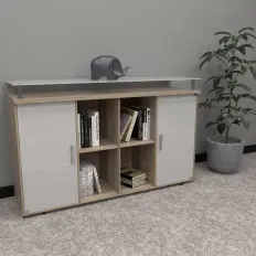 Gaveteiro volante de 5 gavetas com chave com sistema de travamento simultâneo das gavetas, com puxador lateral, tampo confeccionado em MDP de 25 mm e corpo confeccionado em MDP de 18 mm.