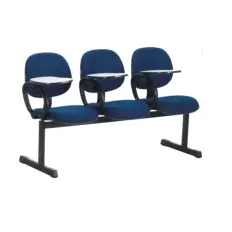 Longarina de espera de 2 lugares com assento e encosto estilo diretor unidos por lâmina de aço, braços corsa em poliuretano, estrutura fixa em aço com acabamento em pintura pó epóxi e tratamento antiferrugem.