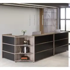 Longarina de espera de 2 lugares com assento e encisto executivos unidos por L sanfonado, estrutura fixa em aço com acabamento em pintura pó epóxi e tratamento antiferrugem.