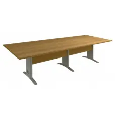 Mesa de reunião retangular com tampo confeccionado em MDP de 25 mm , retaguarda confeccionada em aço carbono e pés confeccionados em aço com calha para passagem de fiação.