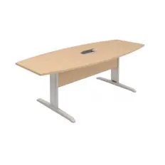 Mesa delta com tampo confeccionado em MDP de 25 mm com gaveteiro fixo, pés de aço tubulares de 50 x 30 e pé central tubular com calha de tomada para passagm de fiação.