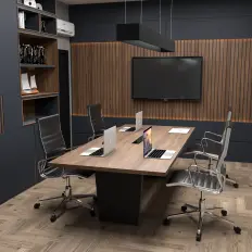 Mesa reta de trabalho com gaveteiro fixo de duas gavetas, tampo encabeçado confeccionado em MDP de 40 mm, pé painel confeccionado em MDP de 25 mm e retaguarda confeccionada em MDP de 15 mm.