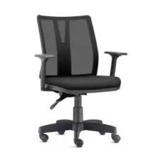 Poltrona giratória Duna com assento e encosto revestidos com detalhes de costura, base giratória com sistema relax e braços fixos.