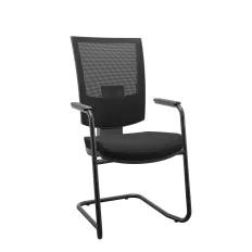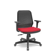 Poltrona presidente Mônaco com espaldar alto, braços fixos pretos revestidos no couro ecológico e base giratória com sistema relax.