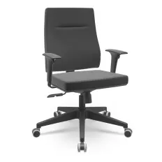 Poltrona Line presidente com base giratória cromada com rodízios em PU e sistema relax, assento e encosto revestidos em couro ecológico e braços fixos integrados com detalhe em couro ecológico.